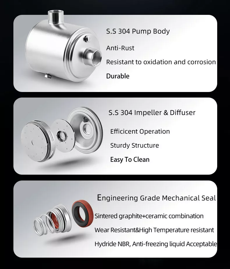 2 .. Pompa centensi uga duwe kaliber sing padha lan ing garis tengah horisontal sing padha. Ora perlu ngganti struktur pipa. Bisa diinstal langsung ing bagean pipa, sing paling trep kanggo nginstal.