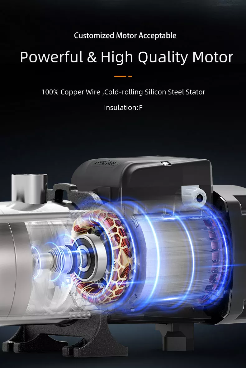 Pompa mulstistipal minangka peralatan pompa banyu sing nyambung pirang-pirang pompa centrifugal ing seri lan ngasilake kekuwatan sentrifugal kanthi muter tekanan multi tahapan kanggo nambah tekanan output. Kanthi mboko sithik nambah tekanan liwat seri Sambungan kanggo ngilangi impellers multi-stage, saéngga entuk pangiriman dhuwur. Persagangan pompa sing multistasi centrifugal sudhut, lan tingkat aliran lan sirah bisa disesuaikan miturut kabutuhan pangguna. Cocog kanggo sirkulasi lan tekanan saka banyu panas lan adhem ing sistem operasi tekanan tinggi, Perlindhungan Kebakaran, banyu pipa boiler, lan sistem banyu pendinginan, lan kiriman macem-macem cairan siram.