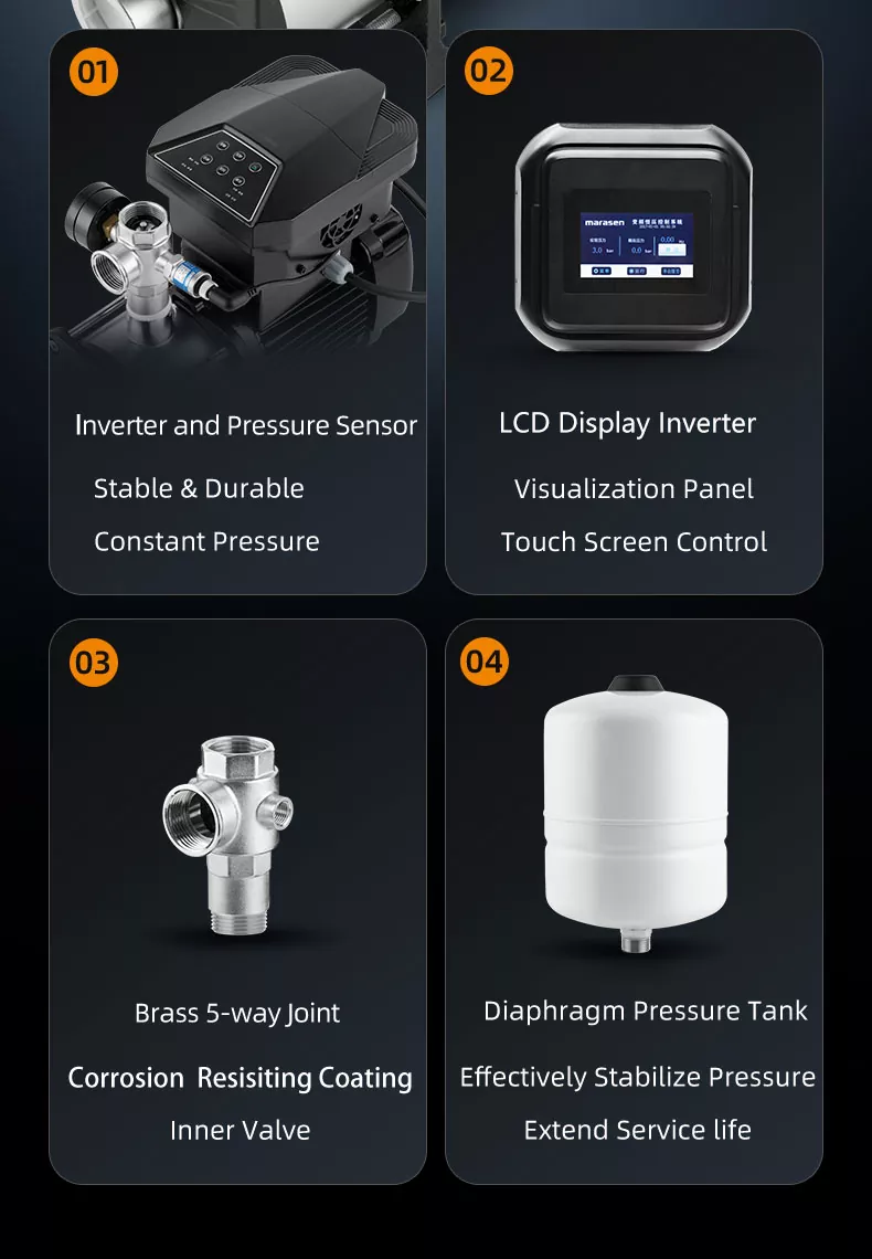 Fitur pangguna-loropaken: Pompa multister tekanan sing pinter dilengkapi kontrol tekanan elecotronical sing ramah pangguna, saéngga gampang lan ngawasi. Ngomong pamit kanggo persiyapan rumit - pompa iki dirancang kanggo nyepetake proses pompa.