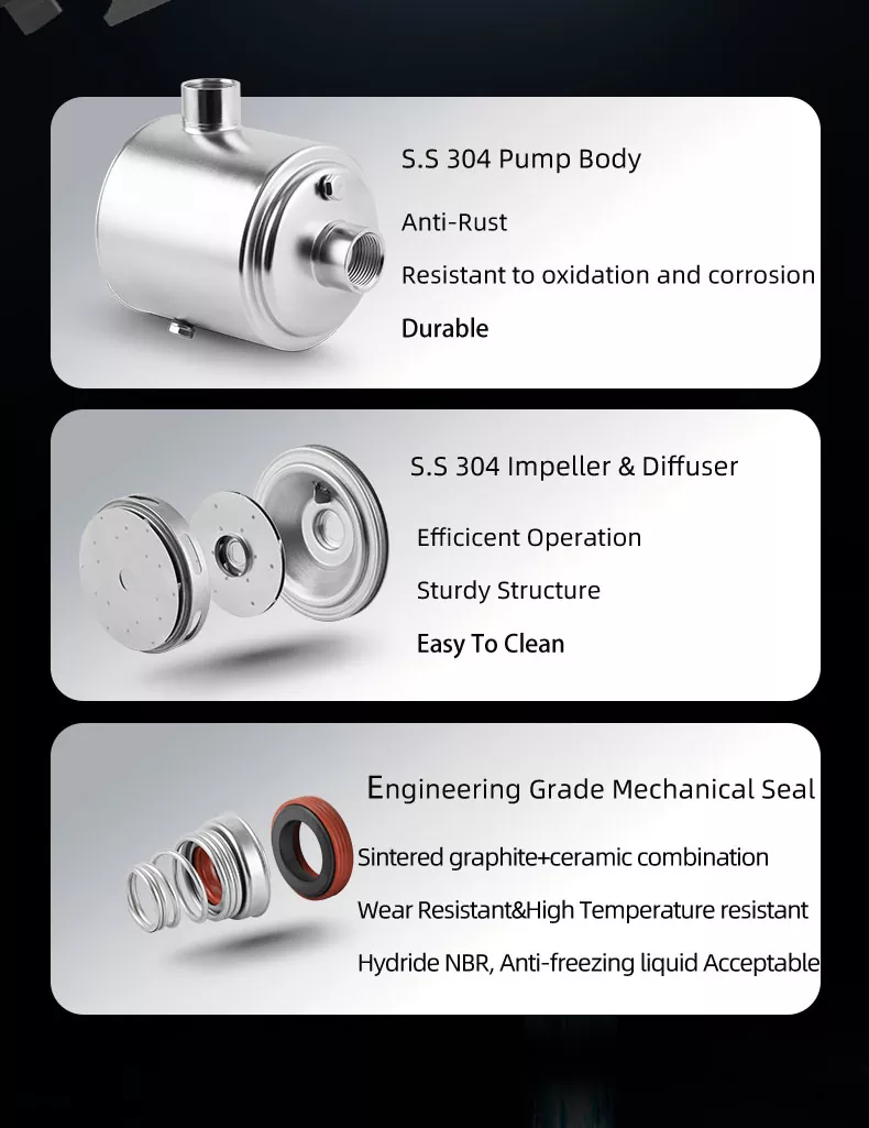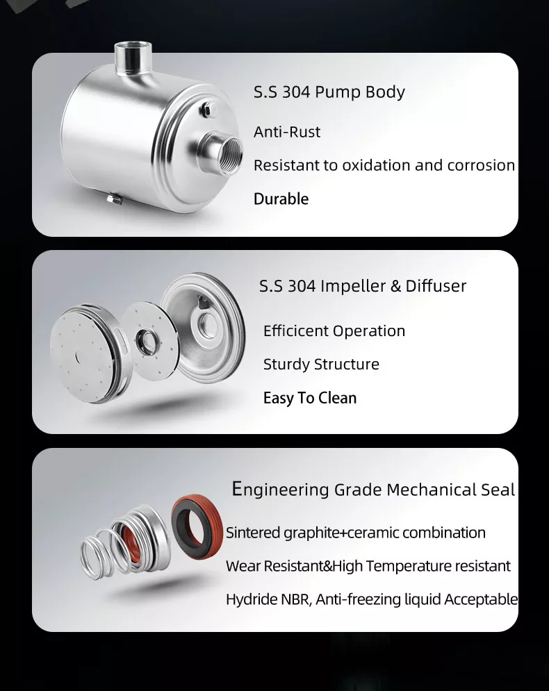 Dibangun kanggo pungkasan, pompa iki nduwe konstruksi stainless steel sing kuat sing nolak karat lan njamin ketahanan jangka panjang. Sampeyan bisa ngandelake pompa iki kanggo ngoperasikake kanthi lancar lan kanthi efisien, sanajan ing lingkungan sing paling nuntut.